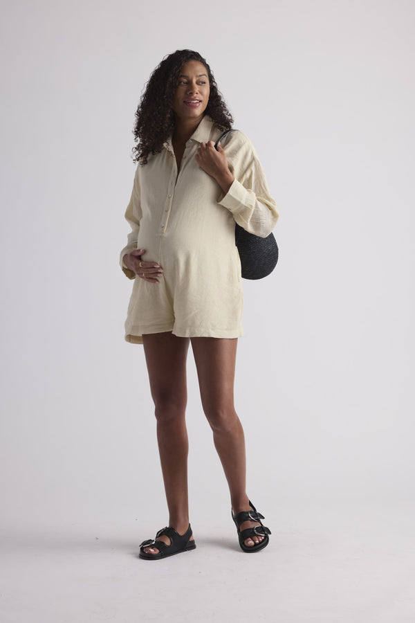 While classic white is a popular choice, maternity dresses also come in a variety of softer shades, offering more options to suit different skin tones and preferences. Cream maternity dresses provide a warmer alternative to bright white, exuding a gentle and cozy feel. These are particularly flattering for autumnal settings or for those who prefer a subtle, muted palette. Ivory maternity dresses, with their slightly off-white hue, bring a touch of sophistication and softness, making them ideal for both casual and formal occasions. This shade pairs beautifully with both bright and pastel colors, offering versatility in styling. Beige maternity dresses stand out as a neutral option, bridging the gap between white and more pronounced colors. They offer an earthy, natural look, suitable for those seeking understated elegance. These shades of white, including cream and ivory, allow for more personalized expression while maintaining the classic and clean look associated with maternity wear.