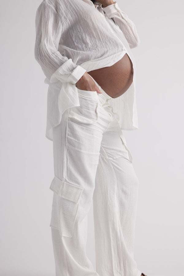 - Sasha - Our all-time fav white maternity maxi dress for photoshoots! Flaunts your skin and flatters all baby bumps with a perfectly placed mid waistline.