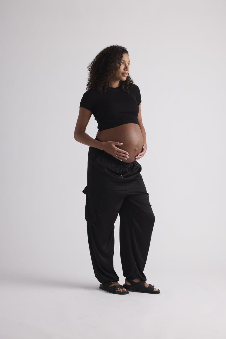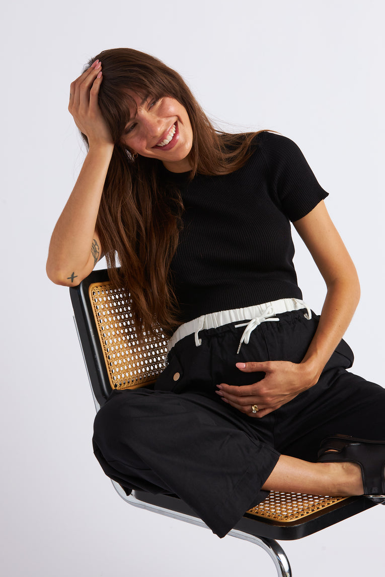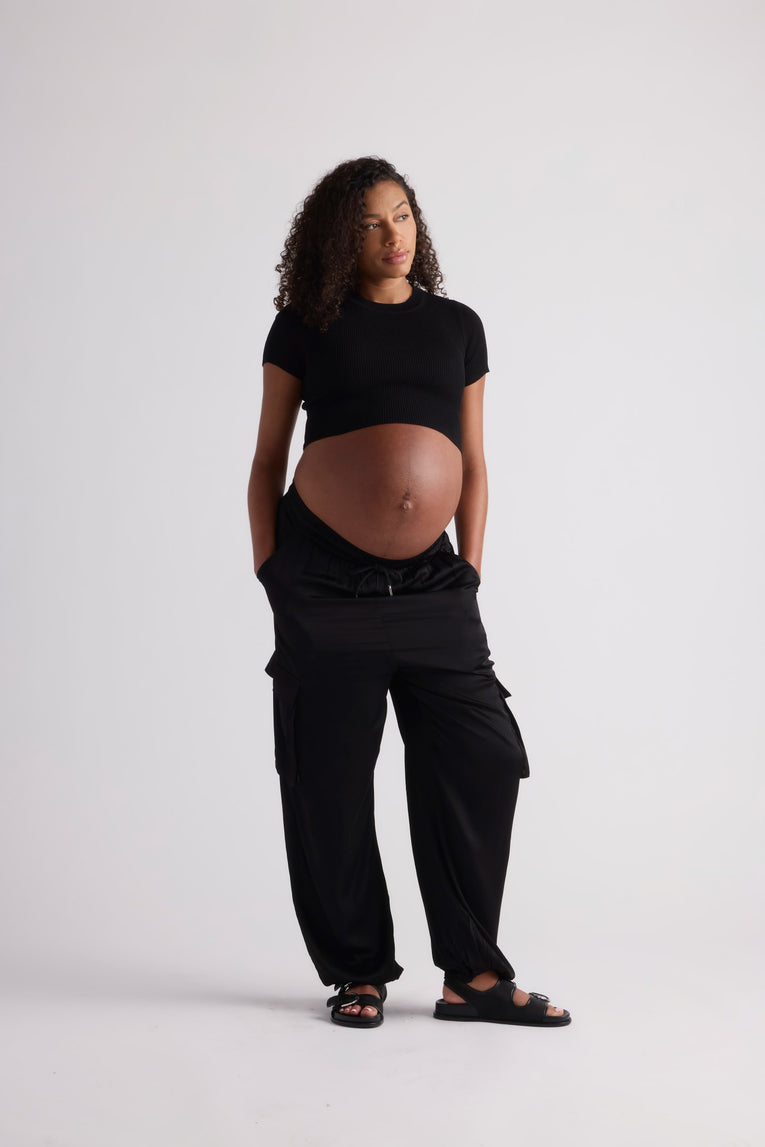 Introducing the Cora Top: the chic alternative to your everyday T-shirt, designed with your curves in mind. This cropped top hugs your tummy in the most flattering way, crafted from luxurious material that offers a polished and refined look. Perfect for styling throughout your pregnancy and beyond, the Cora Top seamlessly transitions from maternity wear to staple fashion piece, ensuring you look effortlessly elegant no matter the occasion. Whether you're dressing up for a night out or keeping it casual, the Cora Top is your wardrobe's new best friend.