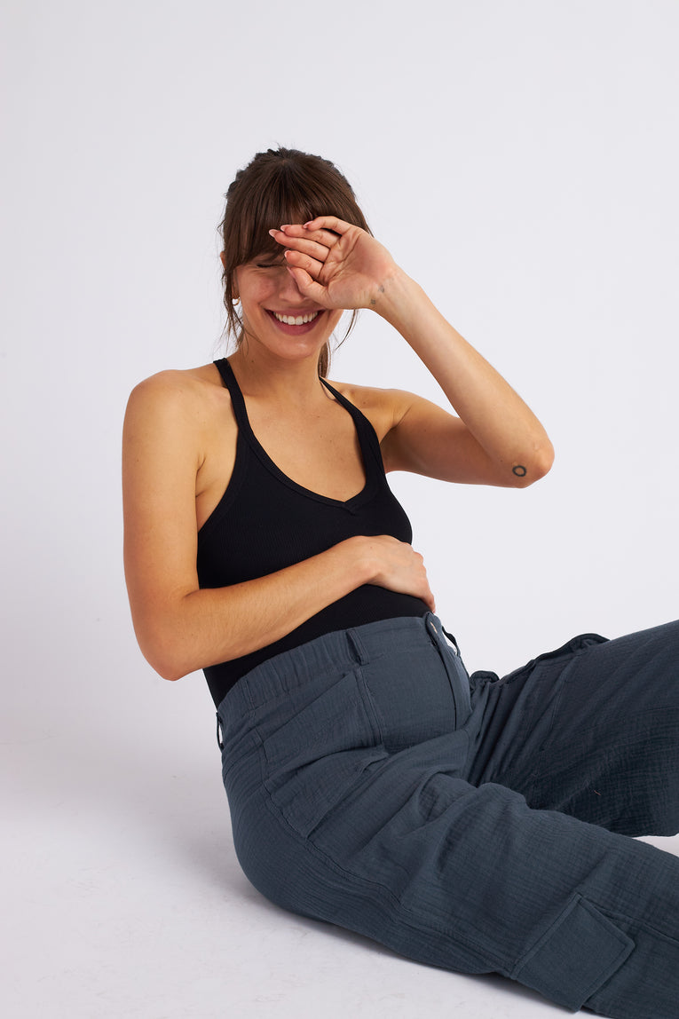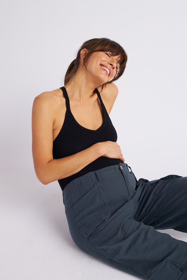 The Kelly Cami is a versatile everyday essential, perfect for layering as a top or wearing alone as a chic slip dress. Crafted from ribbed material, it offers comfortable stretch for a flattering fit.